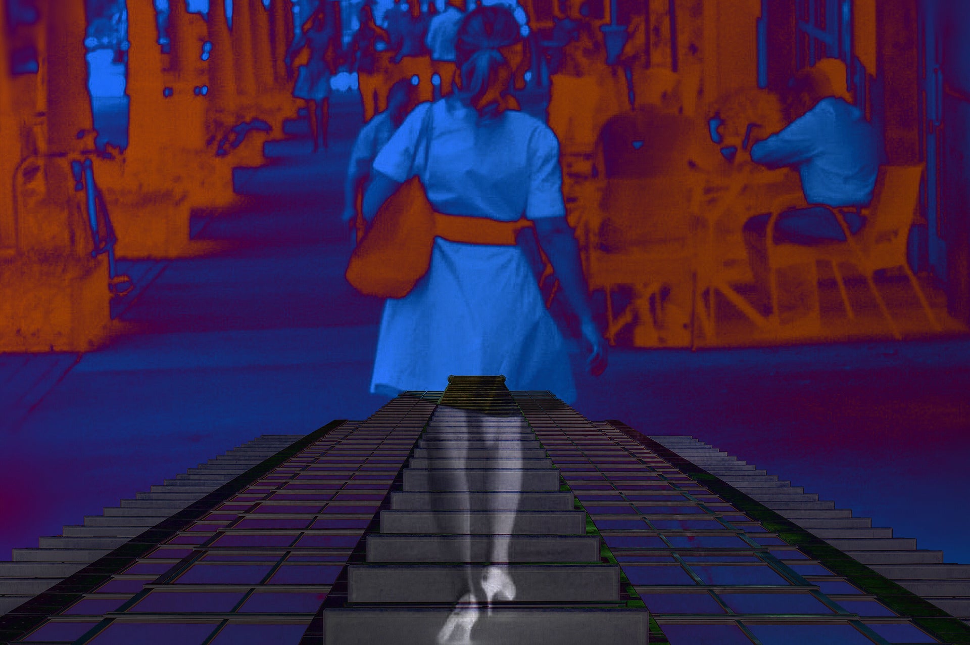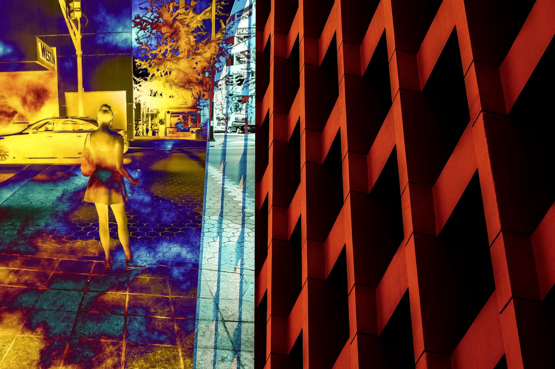 "Brilliant color, just pops off the screen! Really unique way of mixing street and architecture, great graphic mix as well!"